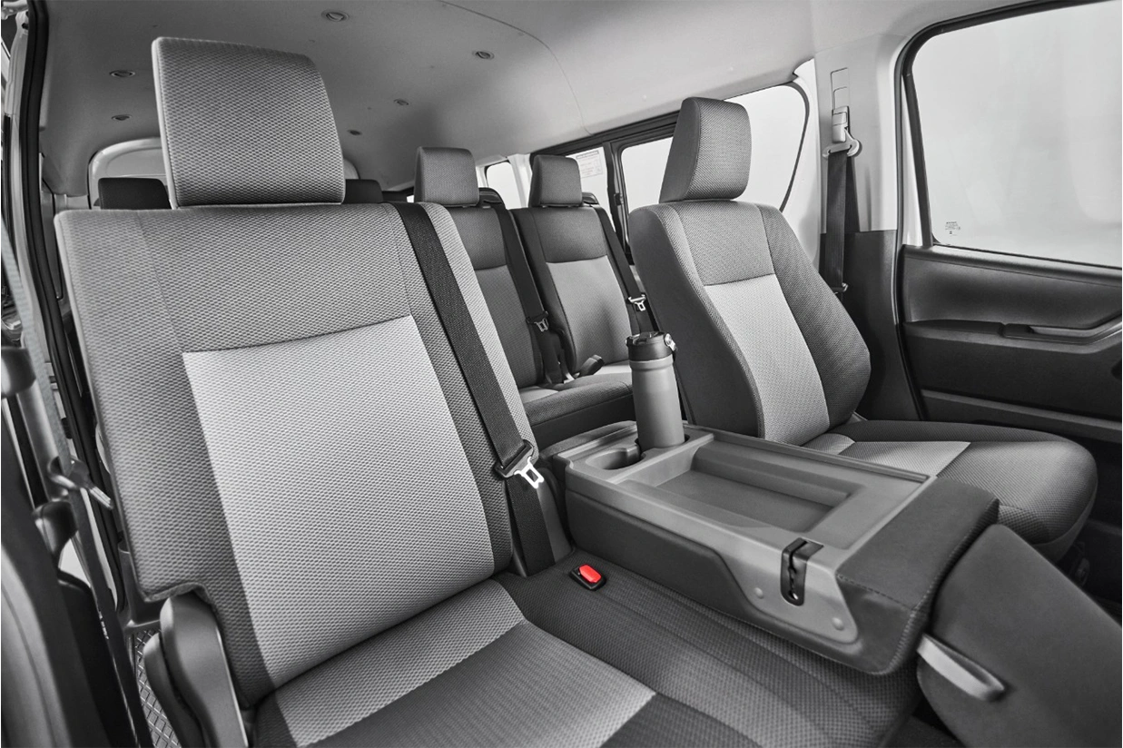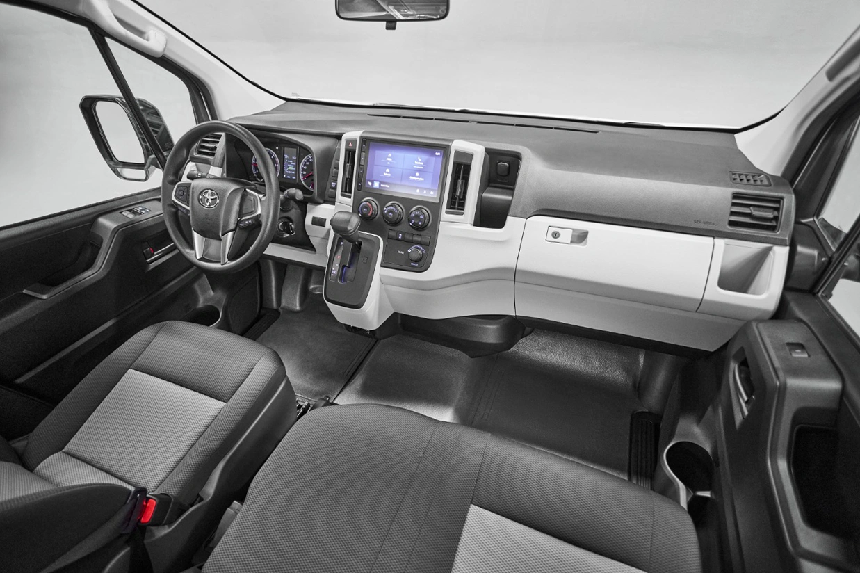 A Hiace, com seu poderoso motor diesel 2.8 de 174 cv e 45,8 kgf.m de torque, traz a mesma força e robustez que a lendária Hilux. Equipada com o sistema de Redução Catalítica Seletiva (SCR), este veículo não só entrega desempenho, mas também respeita os regulamentos de emissões. Disponível com uma transmissão automática de 6 velocidades, a Hiace é a escolha perfeita para quem busca confiabilidade e potência em cada jornada.