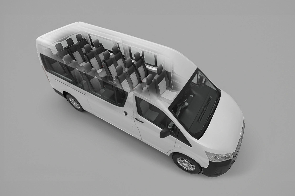 A Hiace é a escolha perfeita para quem busca eficiência e agilidade no dia a dia. Com seu raio de giro compacto de 6,9 metros, ela transforma manobras em espaços apertados em uma tarefa simples e rápida, seja nas ruas movimentadas da cidade, garagens ou em estacionamentos desafiadores. Experimente a liberdade de dirigir um veículo que combina praticidade e conforto!
